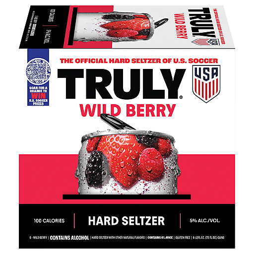 Truly Wild Berry Hard Seltzer blends the naturally sweet flavors of juicy strawberries, raspberries & blackberries. Bring a Truly pack to your next tailgate for the win! Now made with real fruit juice, Truly’s best flavors just got even better. With a delicious hint of refreshing flavor and real juice from concentrate to keep you going all game long, there’s flavor in every play. Whether you’re living it up in the stands or getting fully horizontal on your couch, no Sunday is complete without a Truly Hard Seltzer. Each 12oz. can has 100 calories, 5% alc./vol. and 1g sugars for refreshment that won’t weigh you down. 6 pack, 12 fluid ounce cans.
