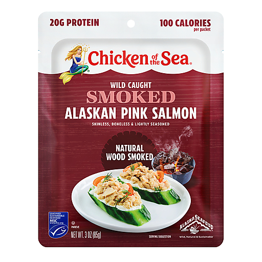 Chicken of the Sea wild caught smoked Alaskan pink salmon contains tender, wild caught Alaskan pink salmon that has been perfectly smoked with natural wood smoke. Wild caught salmon is rich in protein and features vitamin D and heart-healthy omega 3 fatty acids