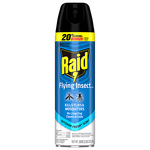 Looking for an all-in-one flying insect killer or spray? Raid Flying Insect Killer 7 is designed to kill a number of flying insects you may encounter. This bug killer can eradicate such bugs as: Asian Lady Beetles, Boxelder Bugs, Flies, Fruit Flies, Hornets, Mosquitoes, Non-Biting Gnats, Small Flying Moths, Wasps, and Yellow Jackets. This flying insect spray kills on contact. It can be used safely as an indoor bug spray or an outdoor bug spray.