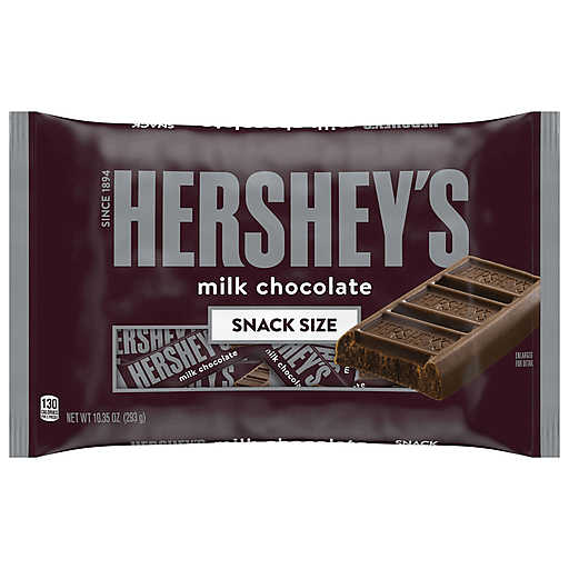 There's happy, and then there's HERSHEY'S Happy. Made of the delectable, creamy milk chocolate that's been a classic for decades, HERSHEY'S milk chocolate bars make life more delicious, whether they're enjoyed alone or shared with loved ones. These kosher certified snack size candy bars are the perfect treat for countless special holidays and all of the everyday occasions in between. Keep this candy bag on hand for guests and store a few in your pantry for convenient snacking when the mood strikes. Show up to movie night with a bag of HERSHEY'S bars to please the whole crowd and perfect the night's snack selection. You can even sweeten up your favorite baked desserts with these chocolates by topping cupcakes, brownies and cookies with a section or two. Everyone is excited when they're reaching for HERSHEY'S milk chocolate, and now you can be too! Add them to your holiday festivities, too! Stuff festive Christmas stockings, fill springtime Easter baskets, stock Halloween candy bowls and trick-or-treat bags and create Valentine's Day gift bags with sweet treats for each and everyone on your list. Make each holiday a little more special with delicious HERSHEY'S milk chocolate candy bars to share and enjoy with those you love the most!