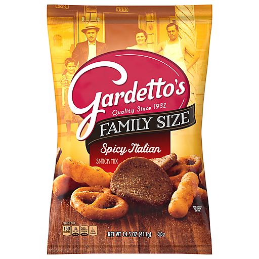 Gardetto’s – the pretzels, the rye crackers, the breadsticks, the secret spices. You know them, you love to crunch them, but did you know Gardetto’s started as a family bakery? Based on an authentic family recipe. Throw in some snack bits and blend of special seasoning, and you’ve got the boldly flavored snack mix we know today. A uniquely delicious savory and salty snack with a blend of special seasonings. Not your standard pub mix, trail mix, or bar snack. Endless taste and texture combinations make it the perfect party mix snack for get-togethers of all shapes and sizes. The irresistible big, bold taste. Contains one 14.5 oz Family Size snack bag in total.